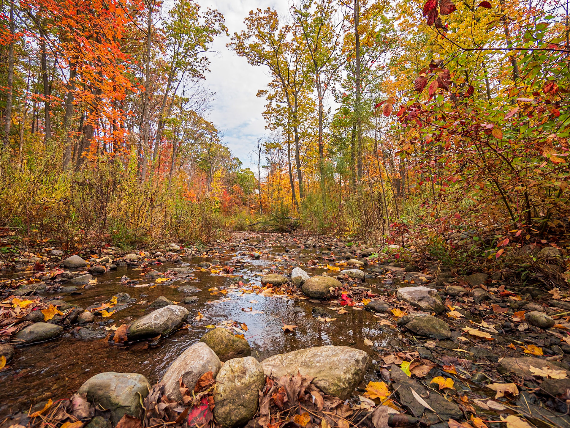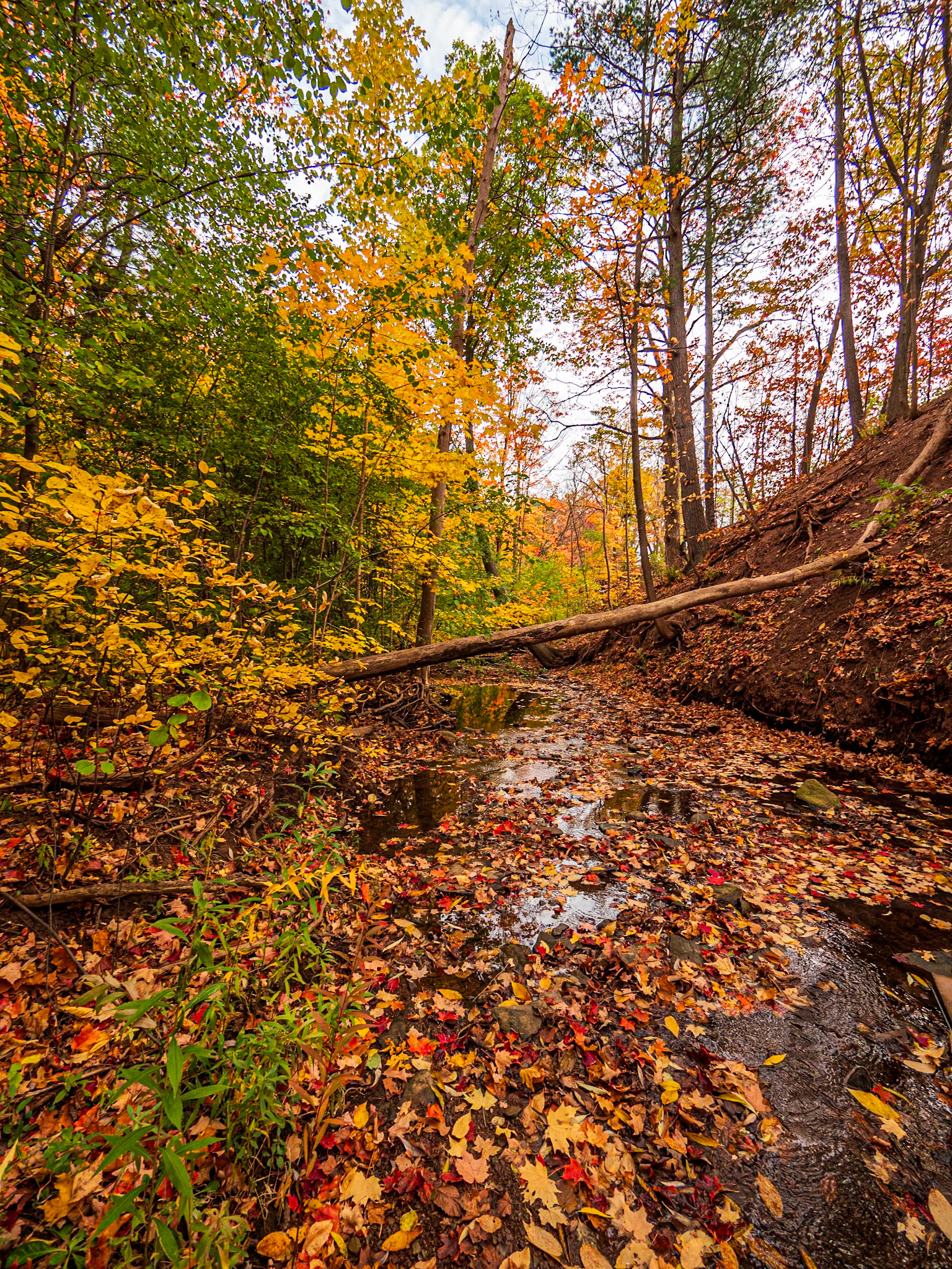 Fall colors along Sixteen Mile Creek in Lion's Valley Park, Oakville, Ontario.