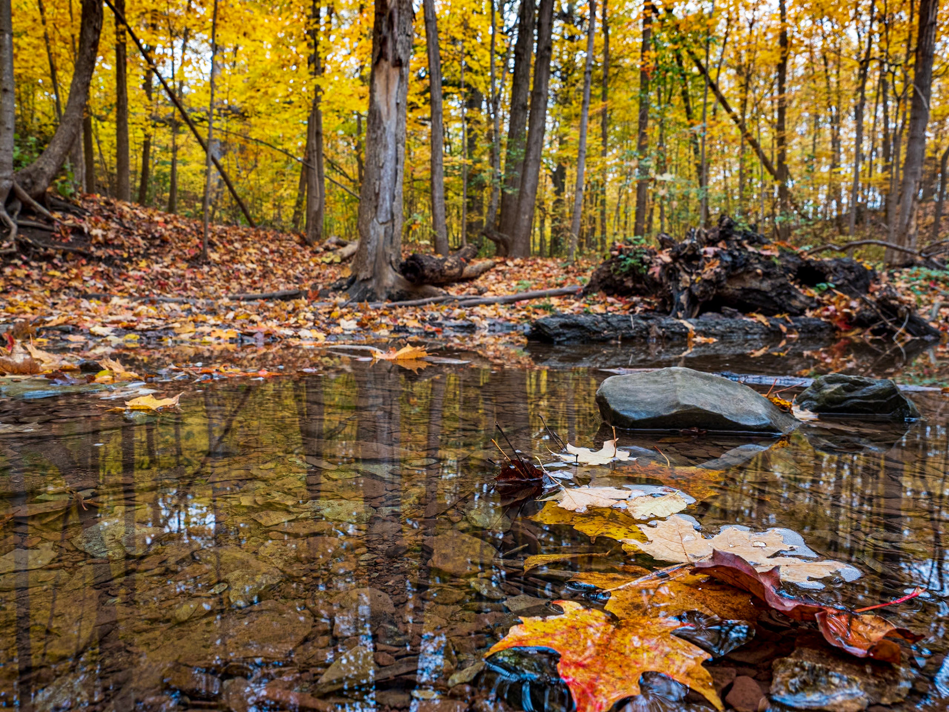 Fall colors along Indian Brook in Thornbury, Ontario.