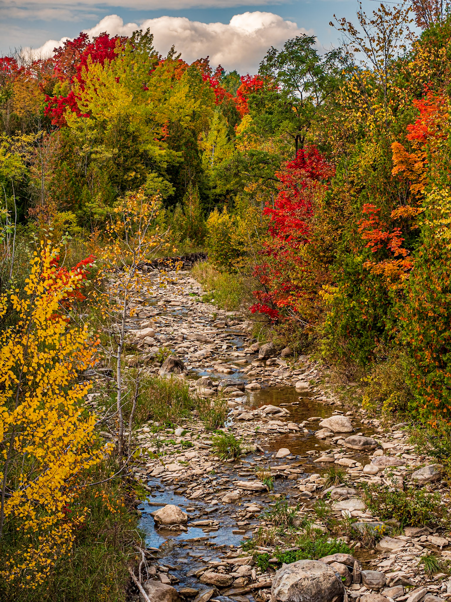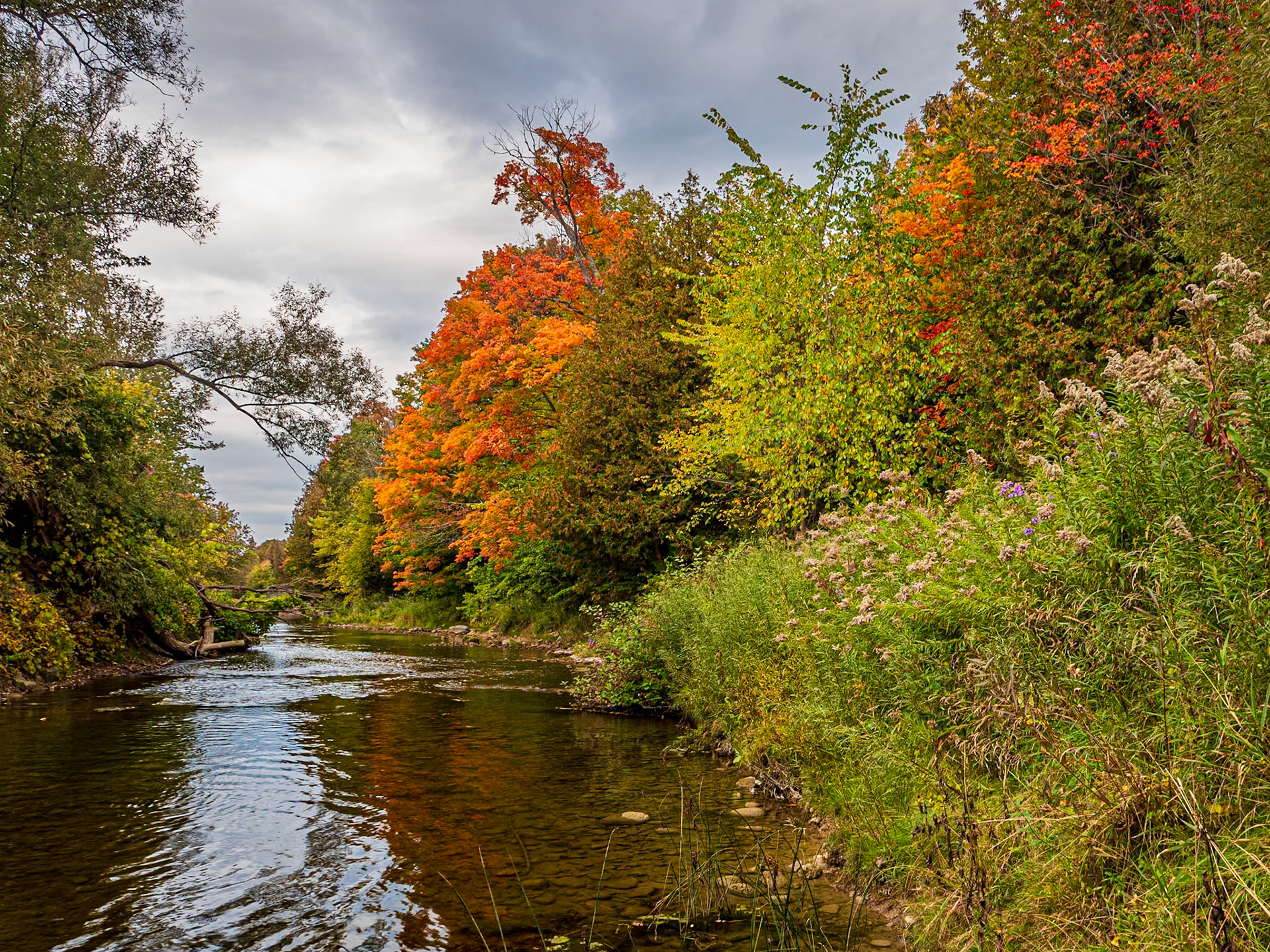 Fall colors along the Bighead River near Meaford, Ontario.