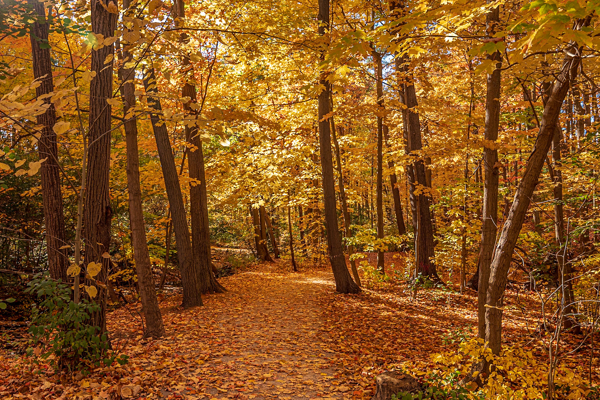 Beautiful fall day along McCraney Creek trail in Oakville, Ontario.